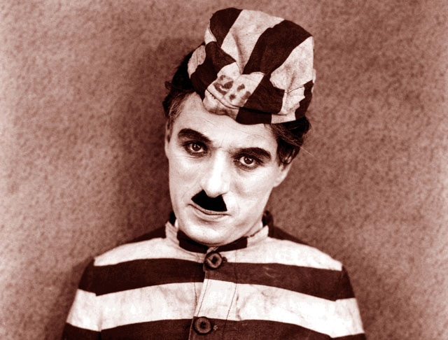 Chaplin is seen dressing in his Tramp costume and applying the famous