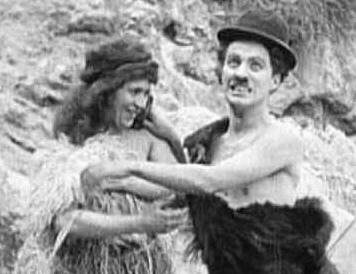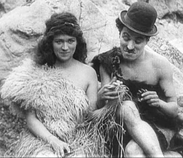 Here she is with Chaplin in His Prehistoric Past: