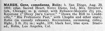 The actual Gene Marsh was in only the one Chaplin film, His Prehistoric Past, before moving on to the Rolin Film Company, founded by Hal Roach and Dan Linthicum , to work with Harold Lloyd in his Lonesome Luke comedies. Here's her biography from Motion Picture Magazine's October 1916 Studio Directory:
