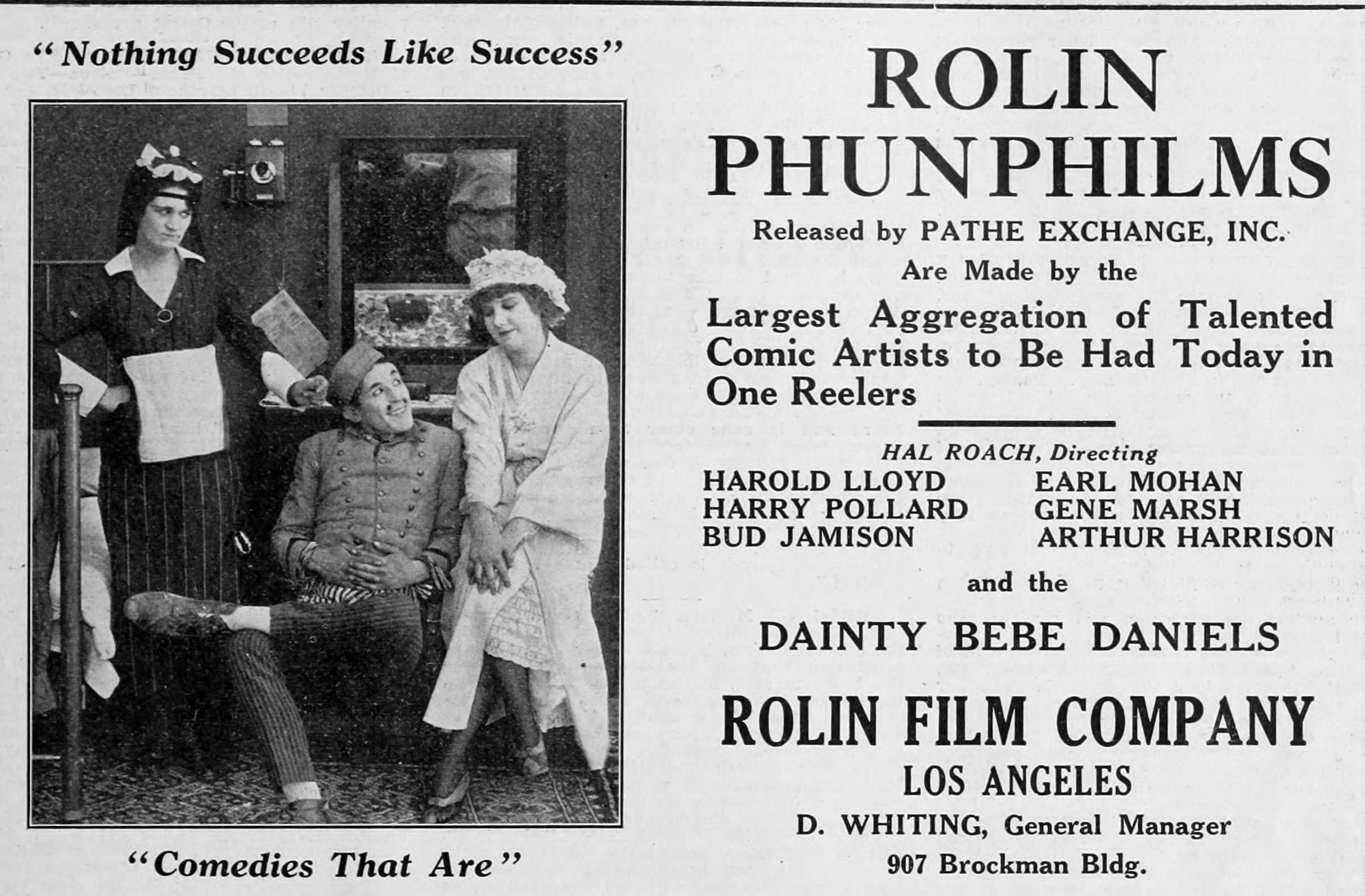 Now here is Marsh, along with Harold Lloyd, Bebe Daniels and Snub Pollard in two ads for the Rolin comedies: